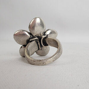 A&C Cream Silver Flower Adjustable Ring