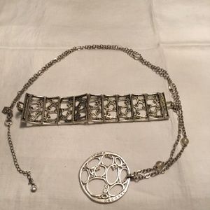 A&C Silver Metal & Crystal Necklace & Bracelet