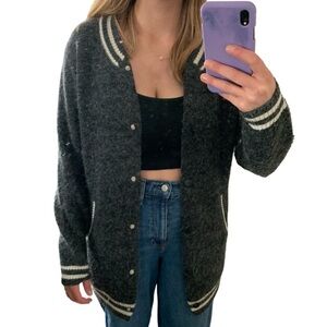 💙 ACADEMIA Style Grey and White Varsity Cardigan