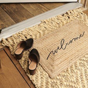 Invite people into your home with this all-natural, artisan-made welcome mat. Made with 100% natural jute fibers sourced in Calcutta, this handwoven homeware is perfect for indoor or outdoor covered use.