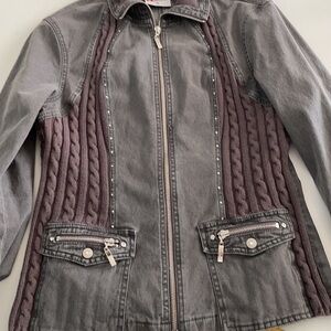 ACEZUNG Jean Jacket with Cable Knit Sweater Design