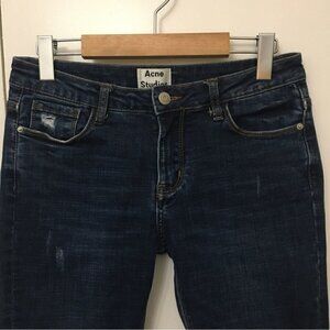ACNE Studios Dark Wash Distressed Raw Hem Cropped Jeans