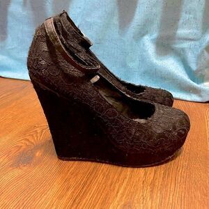 A.CO Black Lace Platform Wedge Shoes Size 39