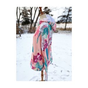 ACX Active Giant Tiger Hoodie Sweater Fleece Floral Pink 80s Vibe Sz L