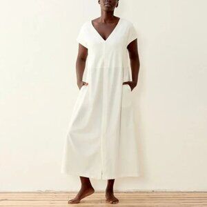 ADAY Minimalist Multiway Stretch Travel White Maxi Dress with Black Belt sz S