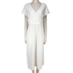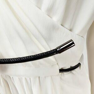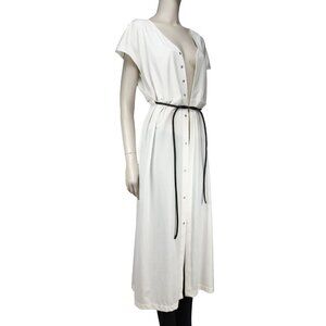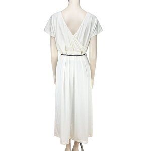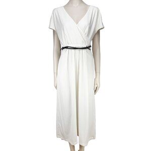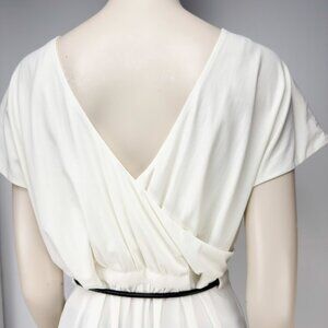 ADAY Minimalist Multiway Stretch Travel Whiteโ Maxi Dress with Black Belt sz S