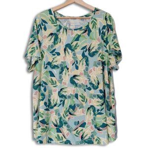 ADDITION ELLE Modern T-shirt Abstract Floral Botanical Green & Blue Top Sz 2X
