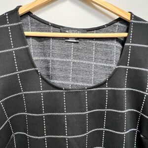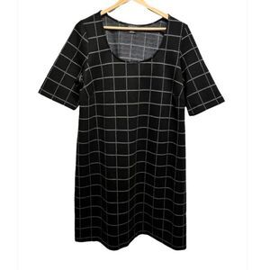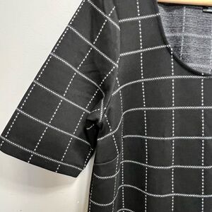 ADDITION Elle Michel Studio Black & White Short Sleeve Checked MIDI Dress