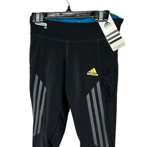 ADIDAS Capri women XS, NWT leggings ,reflective,logo ,black,striped,activewear