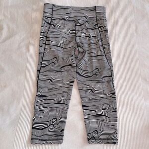 These Adidas Climalite Black and White Printed Crops are in very good, pre-owned condition. They are designed with moisture-wicking Climalite fabric. They feature a snug compression fit, while an elastic waist keeps them secure as you move through your workout.