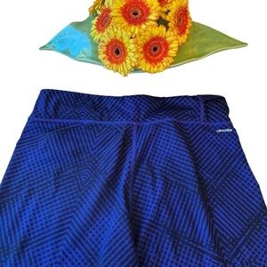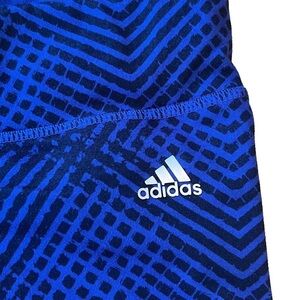 In excellent pre-owned condition, these are great looking leggings in size medium with a black pattern on blue background. Low rise with pocket on side of back waist area. See measurements.