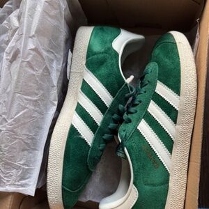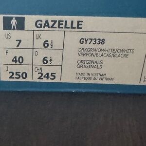Adidas Gazelle Dark Green and White sneakers for sale.