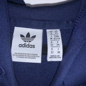 This adidas hoodie is a size XS but fits size S. Only worn once and in great condition. Has two deep pockets, perfect for a phone, wallet, etc. The navy blue colour is gorgeous!