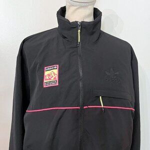 ADIDAS ORIGINALS MEN'S ADIPLORE BLACK PINK NEON ZIP UP NYLON TRACK TOP JACKET