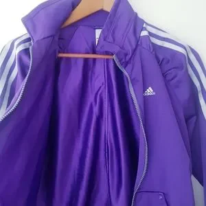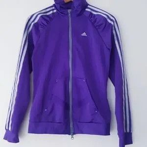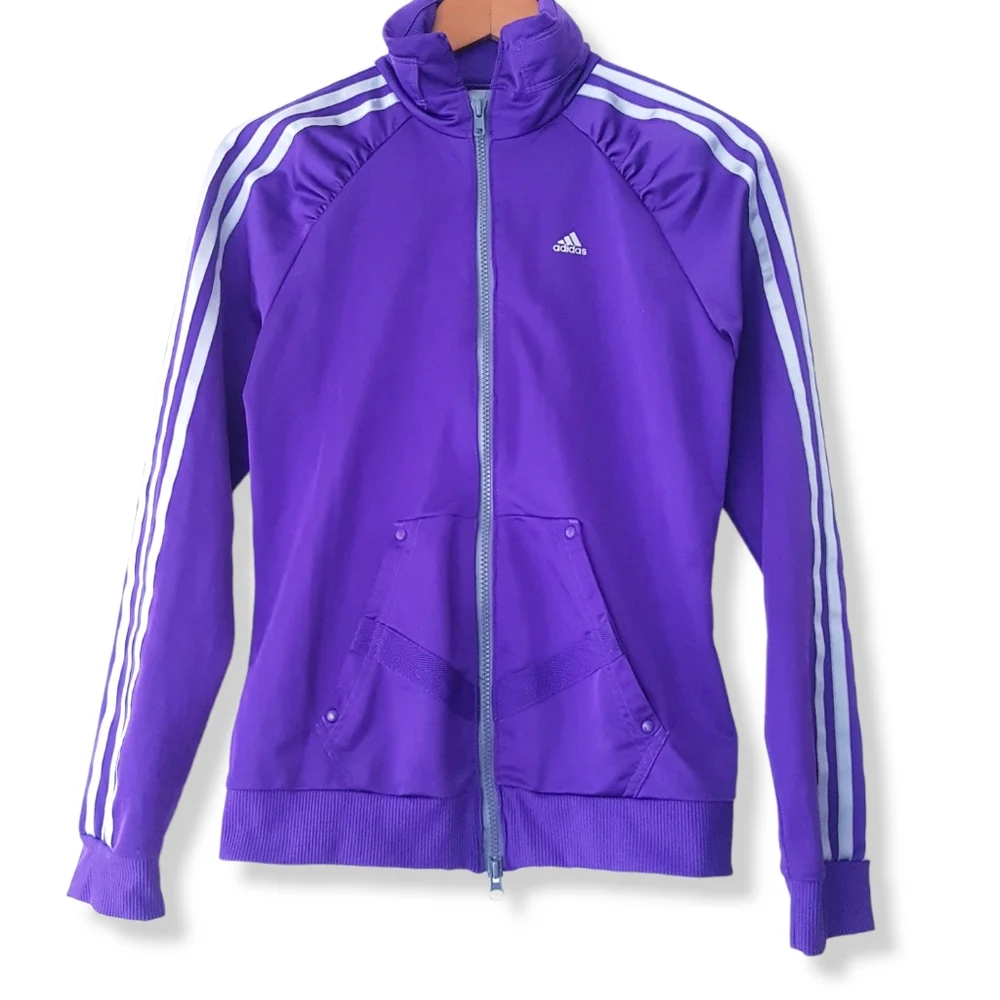 ADIDAS Purple Ruffled Raglan Shoulder Zip-Up Track Jacket