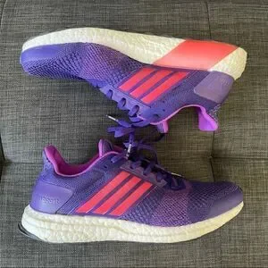 Add a pop of colour to your next run with these fabulous purple ultra boost runners with bright pink stripes. These shoes are very comfortable with quite a bit of cushion. Only worn a few times indoors. Excellent used condition.