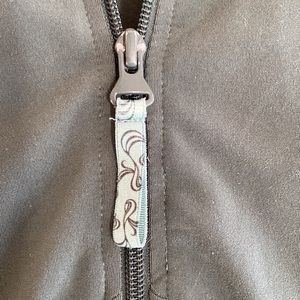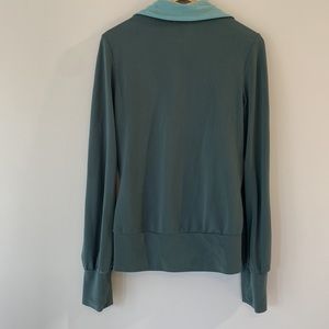 Adidas, CLIMALITE zip-up. Super soft and stretchy. Fits snug in torso, but features stylish, loose sleeves with cuff. Look cute to the gym!!