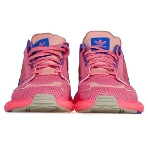 - Logos: solar ink and ambient blush 'adidas ZX' graphic print rubber logo patch on tongue, grey graphic print logo on insole, 'adidas' embossed logo on lateral midsole, ambient blush. 'ZX' silicone lace holder.