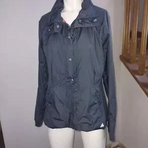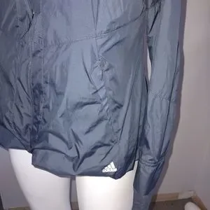 adidas women's medium jacket. grey colorway with pink undertone on back. bin 4