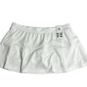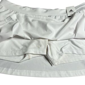 ADIDAS white skort with pleats on the bottom half . Then two horizontal bands.