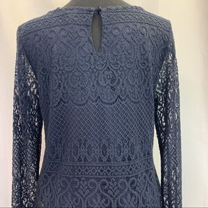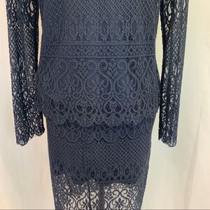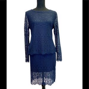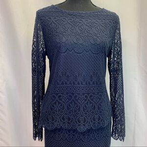 ADIVA Navy blue stretchy lace overlay long sleeve skirt blouse set size medium