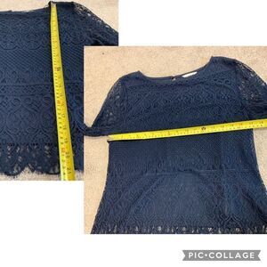 Adiva Navy blue stretchy lace overlay long sleeve skirt blouse set size medium