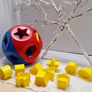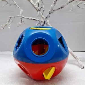 Engage your child's curiosity with this vibrant shape sorting toy. Featuring bright red, blue, and yellow colors, it's perfect for developing motor skills and color recognition.