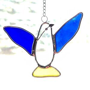 ADORABLE Stained Glass Minis LOT of 4 Hanging Stained Glass HEART BUTTERFLY BIRD