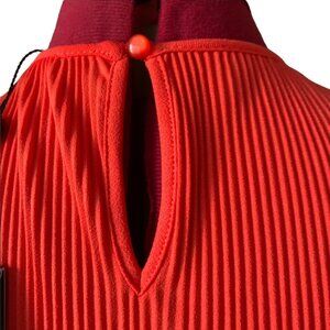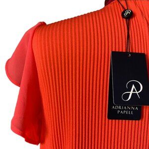 ADRIANNA PAPELL Coral top pleated chiffon ruffle sleeves large