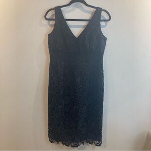 ADRIANNA PAPELL EVENING Sz 10 Venice Floral Lace Deep V-Neck Zipper Lined Dress. Gorgeous dress for an event, a holiday, a party, wedding guest. Superb quality shift dress.