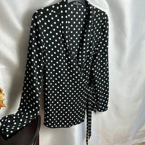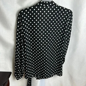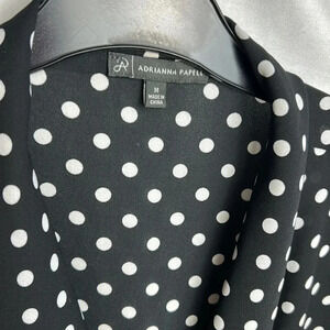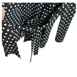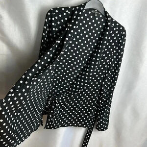 ADRIANNA PAPELL wrap sheer chiffon polka dot B&W blazer,cover jacket,blouse.EC