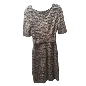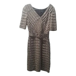 ADRIANNA Papell Brown Leopard Print Midi Belted Tiered Dress 8