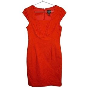 ADRIANNA Papell Sheath Dress Orange Embroidered Cocktail Party Cap Sleeve
