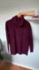 DESCRIPTION: Get ready for Fall with this lovely Maroon Cowl Neck Sweater. Extra soft lightweight wool. Ribbed cuffs and hem. Knit detail at the neck below the cowl neckline and side buttons. Hip length.