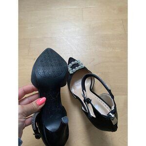 ADRIENNE Vittadini BNWOT "Nirvana" Ankle Strap Black Jeweled Heel Women Sz 7.5