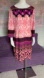 ADT Pink, Peach and Black Pattern Sheath Dress Bateau Neckline 3/4 Sleeve S 16