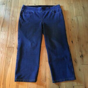 Good preowned condition, blue denim, straight leg, pull on jeans by ADX. Nice stretchy pants. Could double as tights. Pairs nicely with tunics and easy to pull on with a thick stretchy waist. These remind me of jeggings.