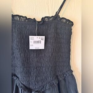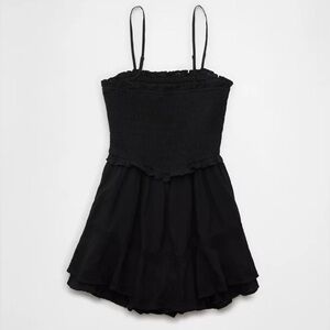 AE American Eagle Smocked Black Bella Ruffle Tiered Romper Playsuit Coastal Cowgirl Boho Prairie Mini Dress