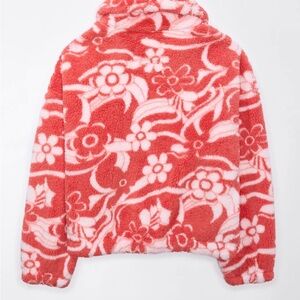 AE American Eagle Zip-Up Bear Hug Sherpa Jacket Pink Flowers XS oversized bomber