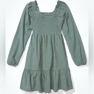 AE Long-Sleeve Smocked Corduroy Mini Dress