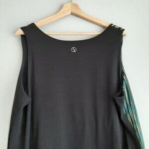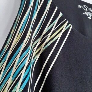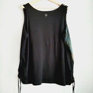 AE SPORT Athletic Tank Top Ruched Sides Black Wave Pattern Sz 4X