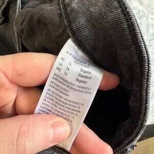 Thrifted these jeans that were basically new. They are just a bit too big and don't hug the right places. Washed black jean.
