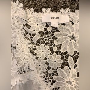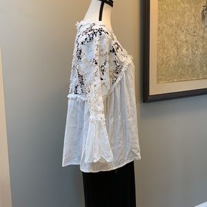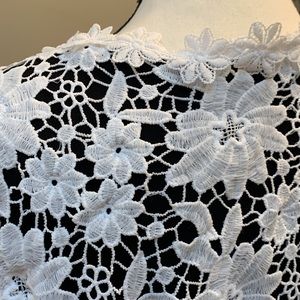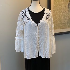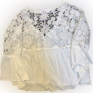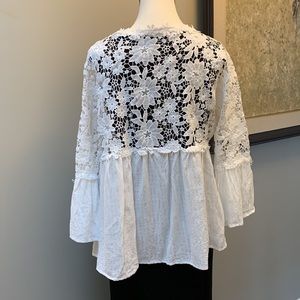 Crochet daisies Gauzy Bell sleeve White Clean pits Mother of Pearl buttons