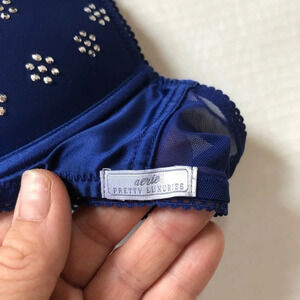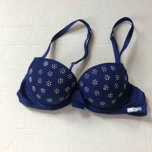 Very good condition. Super cute bow in the middle with silver detailing on the cups. Size 32B.