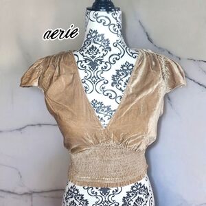 🆕️ AERIE Beige-Gold Crushed Velour Cropped Top- XSmall