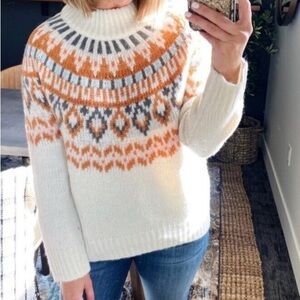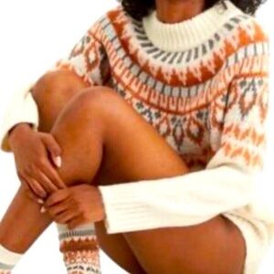 AERIE | Cozy Cream and Orange Patterned Soft Knit Sweater