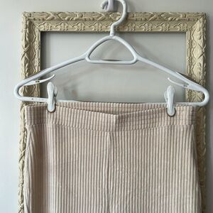 Experience the perfect blend of comfort and style with these Aerie cream flare pants. Crafted from a soft knit material, these high-waisted pants offer a relaxed fit that flares elegantly from the knee down. Their versatile cream color makes them an ideal choice for any occasion.