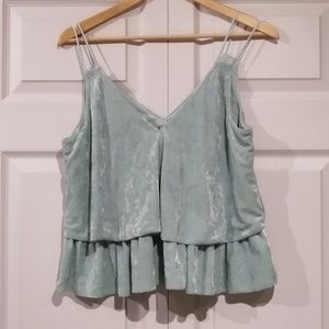 AERIE Crushed Velvet Ruffle Tank Mint NWOT
