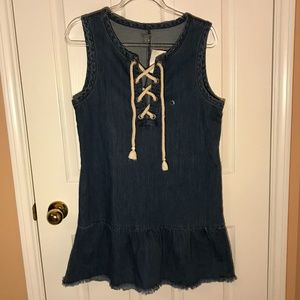 - Cute flare detail at bottom of dress with raw shredded hem.