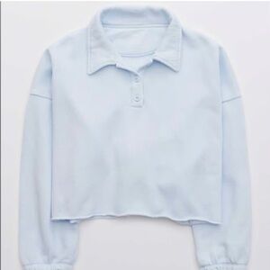 AERIE Fleece of Kind Light Blue Collared Sweatshirt